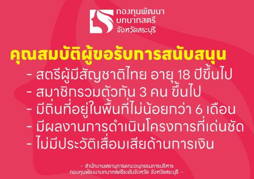 นางสาววันวิสาข์ ศรีศักดิ์วิชัย พัฒนาการอำเภอเมืองสระบุรี มอบหมายให้ นางสาวญาดา ศริพงษ์ อาสาพัฒนา(อสพ.) ดำเนินการประชาสัมพันธ์และส่งเสริมให้สตรีในพื้นที่เทศบาลตำบลตะกุด สมัครเข้าร่วมเป็นสมาชิก “กองทุนพัฒนาบทบาทสตรี” เพื่อเปิดโอกาสให้สตรีทุกกลุ่มอาชีพได้เข้าถึงสิทธิประโยชน์และการสนับสนุนจากภาครัฐอย่างเท่าเทียม