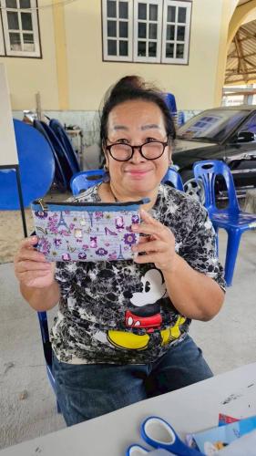 - ฝึกอบรมหนุนเสริมอาชีพแก่กลุ่มเป้าหมาย : ทำกระเป๋าผ้าแฮนด์เมด โดยวิทยากร นางสาวฉวีวรรณ พรรณพราว ผู้ผลิต ผู้ประกอบการ otop